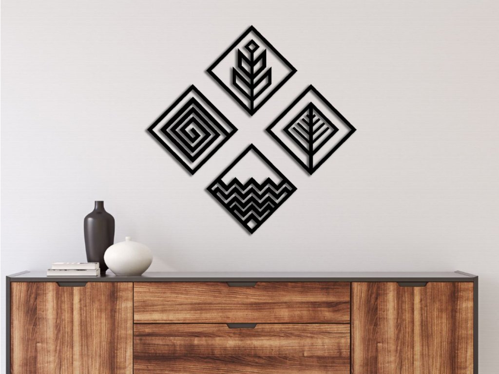 Set nástěnných kovových obrazů Čtyři živly Geometric